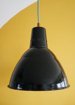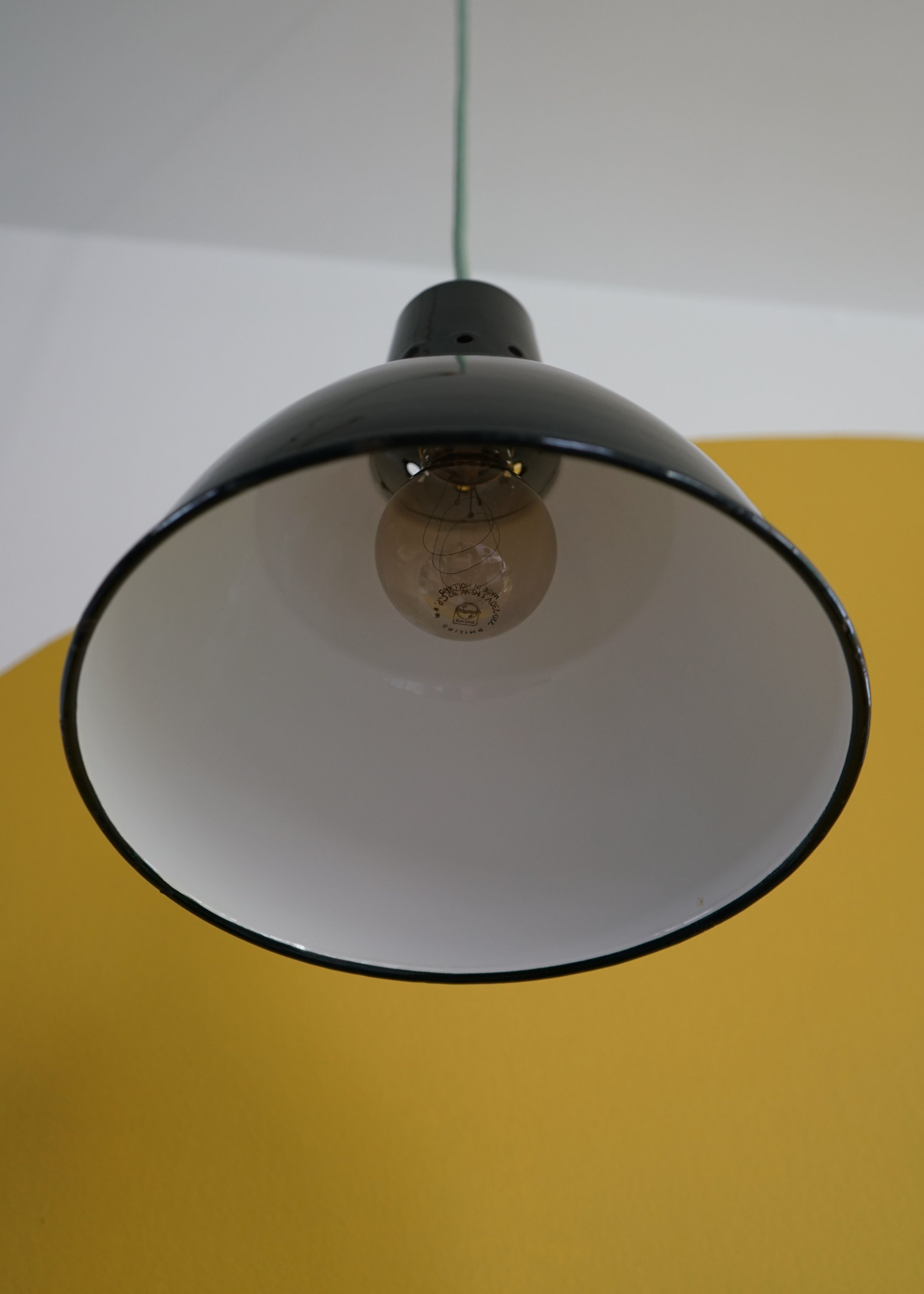 Durchmesser: 260mm Höhe: 280mm Material: Emaillierter Metalllampenschirm Farbe: Schwarz Fassung: E27 aus Messing/Kupfer und Keramik Kabellänge: 1.7m Kabelfarbe: Blattgrün ohne Leuchtmittel